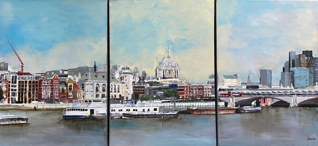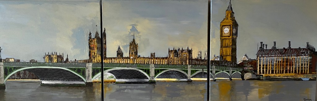On Reflection at Albert Dock – acrylic on canvas (showcased in Artist Talk magazine and Vanity Fair)